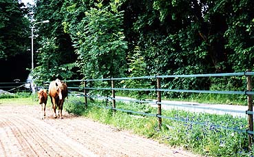 Lämna några meters mellanrum mellan hingst och stohage som säkerhet, för att inte hästarna ska få ”noskontakt” och sparka in i bandet.