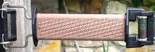 Speciella handtag med två krokar. En för plus och en för minuspolen.