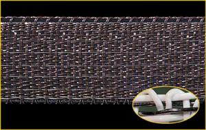 I Bandet finns också 31 st längsgående polyethylen trådar som är 0,5mm tjocka. De tvärgående trådarna är 0,4 mm grova. ”Väven” är av UV behandlad polyeten för att hålla många år och inte brytas ner av solens strålar.