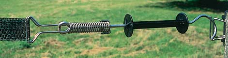 En spännare på varje grindstolpe ger möjlighet att sätta fast och sträcka upp bandet. Varje gång bandet börjar eller slutar så behöver du en spännare